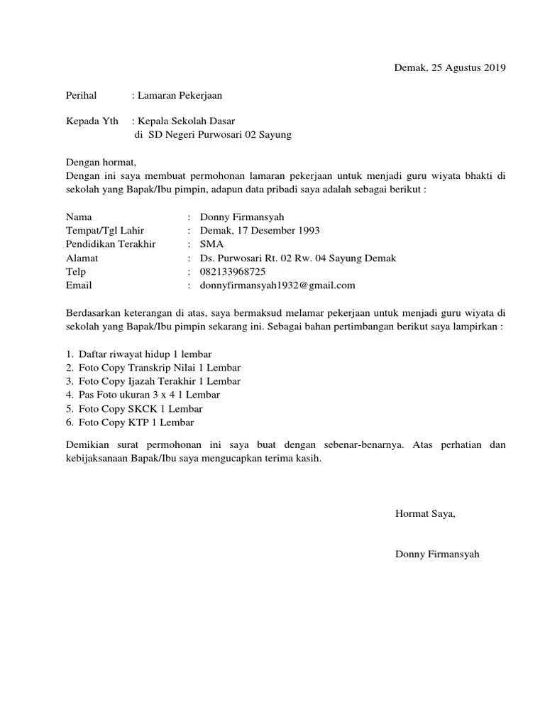 Jika kamu ingin melamar kerja menjadi guru sd, di bawah ini terdapat salah satu contoh surat lamaran tersebut yang . Berisi contoh surat lamaran kerja guru 2021 baik sekolah sd, smp maupun smk, juga contoh surat lamaran kerja guru honorer yang masih kuliah. Anak dan dunia pendidikan, kiranya menjadi motivasi dasar saya melamar kerja . Contoh penulisan alamat penerima pada surat lamaran pekerjaan guru: Contoh surat lamaran kerja guru sd, contoh surat lamaran kerja guru smp,.